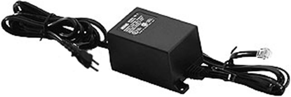 Image: Rane RS-1 Power Supply. This image displays the Rane RS-1 Power Supply, a black rectangular unit with an attached power cord featuring a two-prong North American plug on one end and an RJ-45 style connector on the other, designed to provide power to compatible Rane audio equipment.