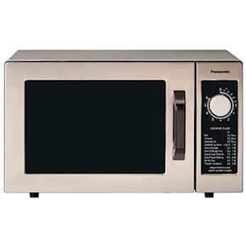 Фронт view of the Panasonic NE-1054F Light Duty Commercial Microwave Oven, showcasinњегова спољашњост и контролна табла од нерђајућег челика.