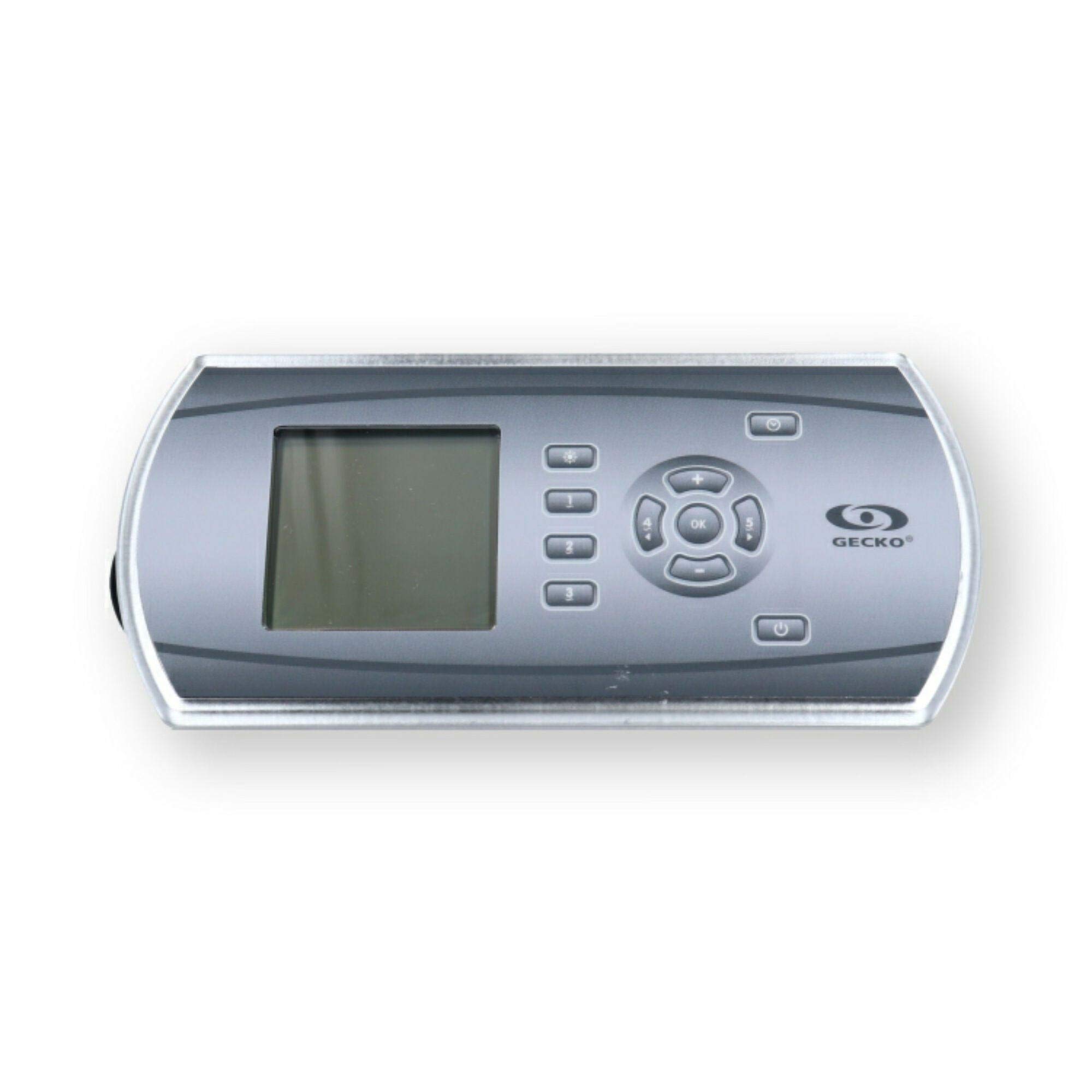 The Gecko in.k600 keypad features a large LCD display and 11 raised keys, providing a streamlined interface for controlling your spa's functions. Its low-profile design ensures easy integration into your spa environment.