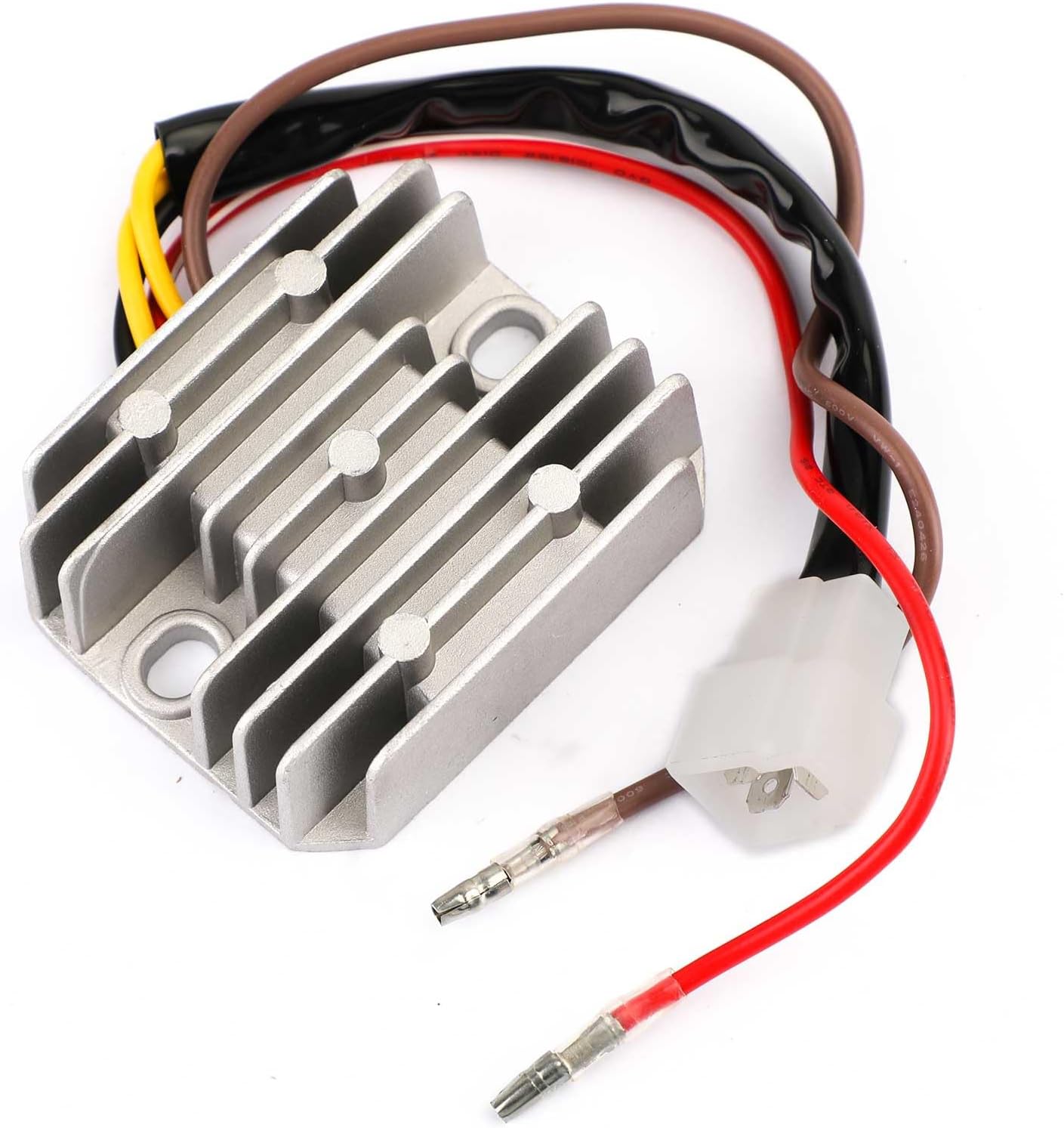 The Areyourshop Voltage Regulator Rectifier (Model 21066-1014) is a direct replacement unit designed for specific Kawasaki motorcycle models. It features a robust aluminum heat sink for improved heat dissipation and high-grade electrical components for reliable performance.