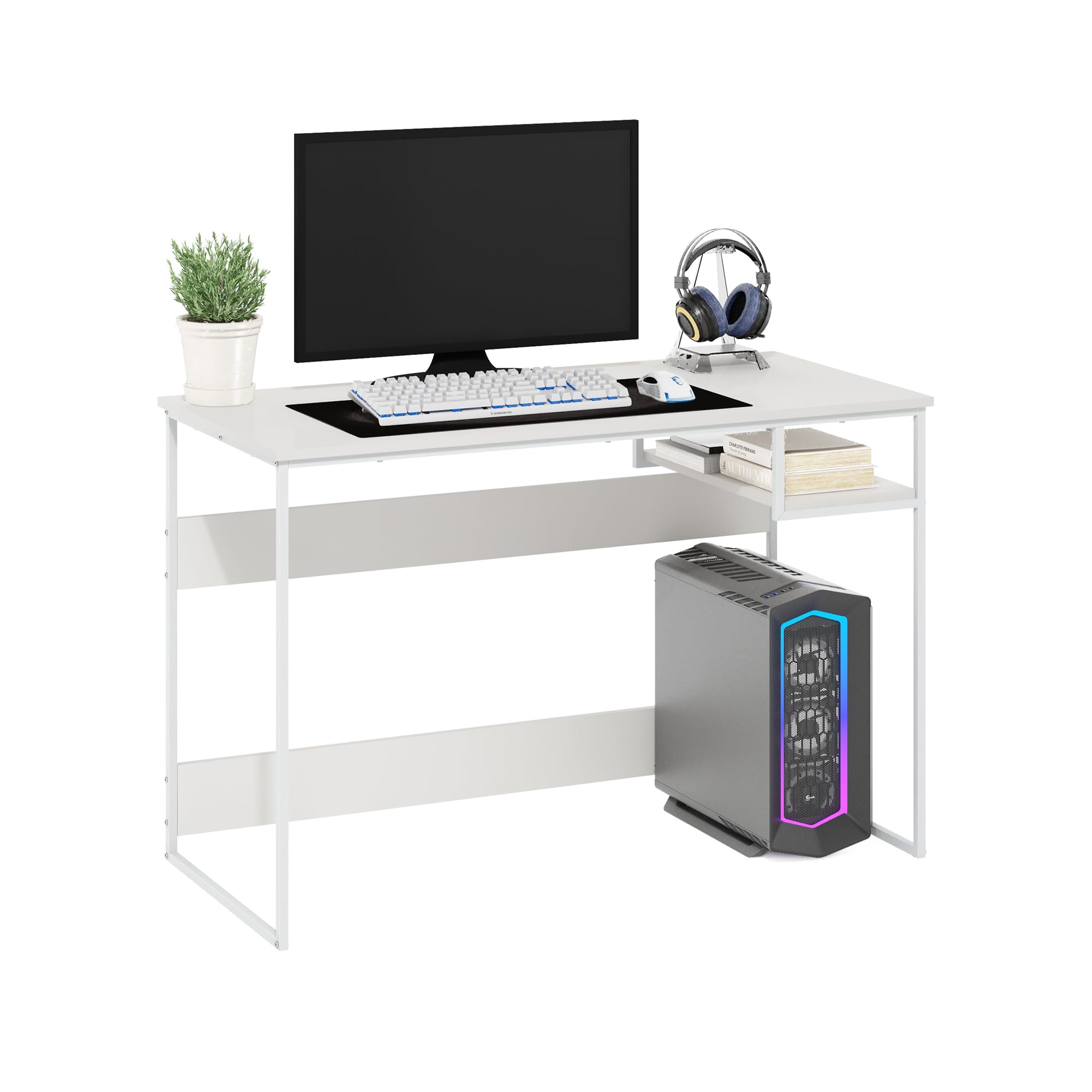 Utilize the open shelf for storing books, stationery, or small electronic devices to keep your workspace organized.